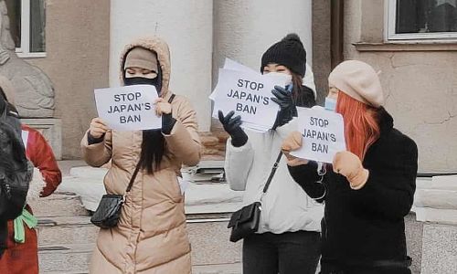 Sinh viên Mông Cổ biểu tình phản đối lệnh cấm nhập cảnh của Chính phủ Nhật Bản (Ảnh: The Japan Times).