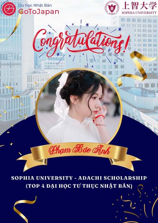 Một hành trình dài với biết bao nỗ lực, kiên trì và đam mê cuối cùng cũng gặt hái được trái ngọt – học bổng Adachi 100% học phí tại Đại học Sophia! Đây không chỉ là một suất học bổng danh giá, mà còn là tấm vé mở ra cánh cửa để em chinh phục ước mơ trở thành một chuyên gia truyền thông và tiếp thị nội dung trong môi trường quốc tế.