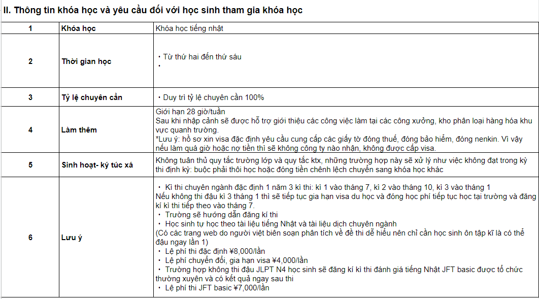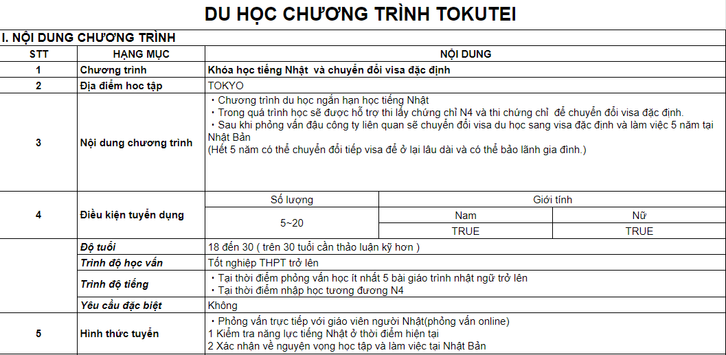 THÔNG TIN CHƯƠNG TRÌNH TOKUTEI: