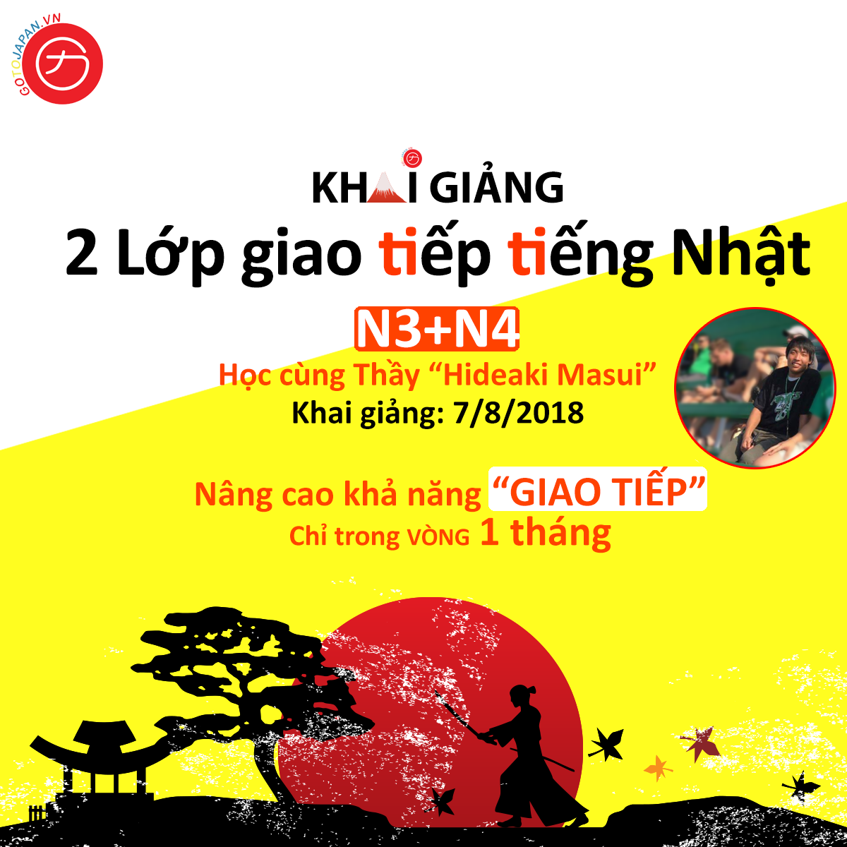 – Lớp học sẽ khai giảng ngày ngày 7/8 và chỉ học trong 1 tháng (7/8/2018-5/9/2018) và sẽ chỉ dành cho các bạn trình độ tương đương N4 hoặc học từ bài 15 trở lên.