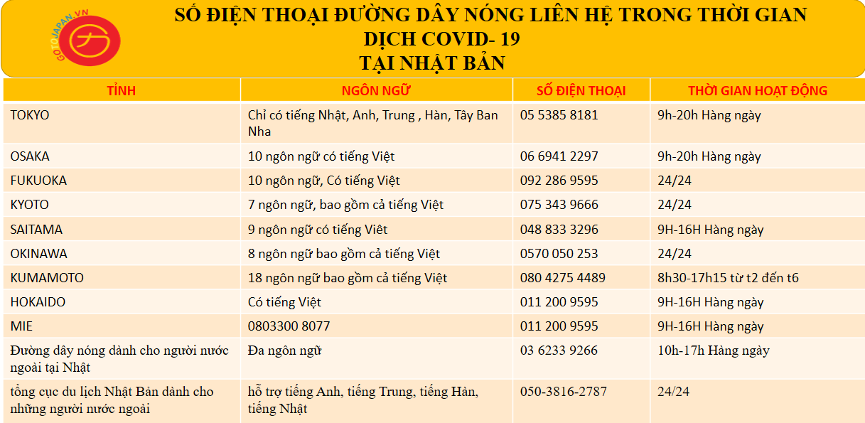 Dưới đây là thông tin về một số đường dây nóng hỗ trợ bằng tiếng Việt ở Nhật Bản cung cấp dịch vụ tư vấn về Covid-19 cho người nước ngoài tại Nhật và một số kênh thông tin hữu ích có thể bạn quan tâm.