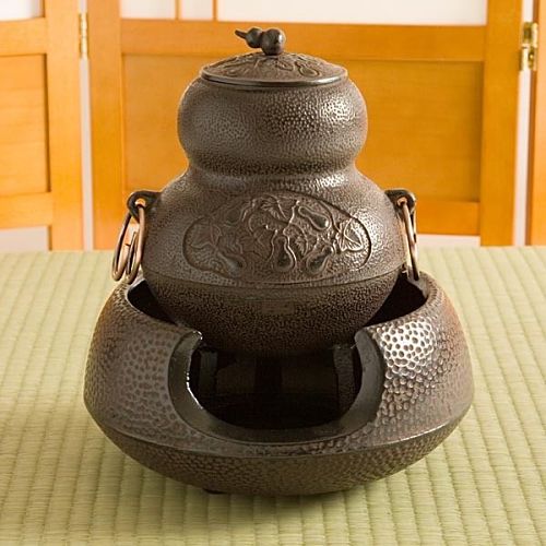 – Furo (風炉) – lò đun nước di động: Furo thường được sử dụng vào mùa xuân – hè, có thể làm bằng đồng, sắt hoặc đất sét, trên miệng lò có một cửa nhỏ để thay than khi cần. Khi đun, lò được đặt trên một tấm gỗ để tránh làm cháy chiếu tatami trong phòng.
