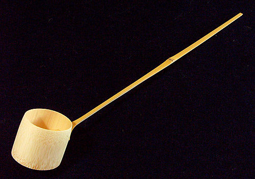 – Hishaku (柄杓) – môi múc nước pha trà: Hishaku được làm từ một thân tre hơi uốn cong với phần giữa cán môi trùng với một đốt tre, gắn với một chiếc gầu hình trụ. Người pha trà sử dụng môi để múc nước sôi từ ấm đun nước vào chén uống trà.