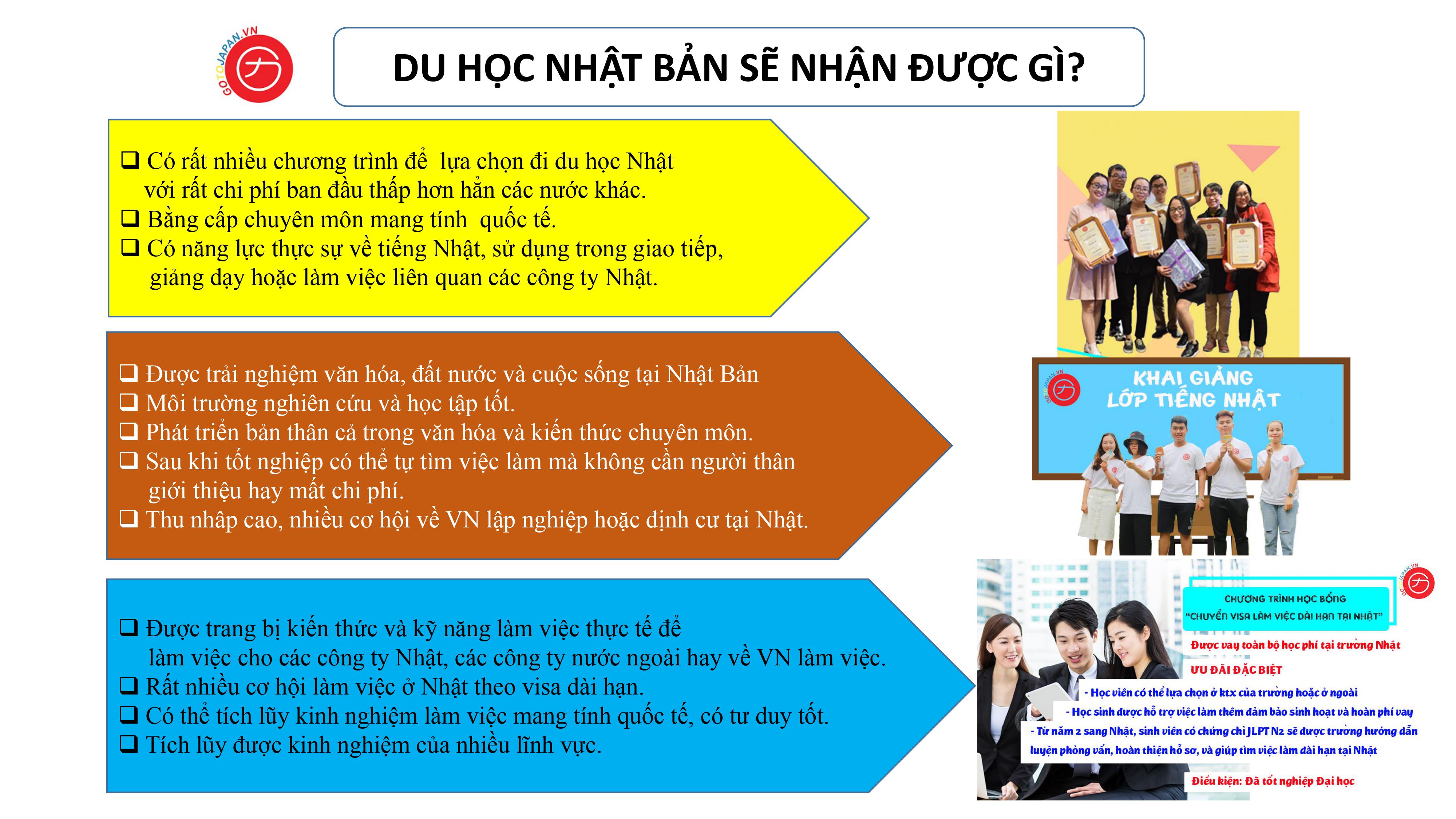 GotoJapan với nhiều năm kinh nghiệm tự hào là trung tâm tư vấn du học có lượng học sinh đi du học với các chương trình du học học bổng , du học tự túc có chất lượng và phù hợp với khả năng , mục đích du học và điều kiện kinh tế của mỗi học sinh