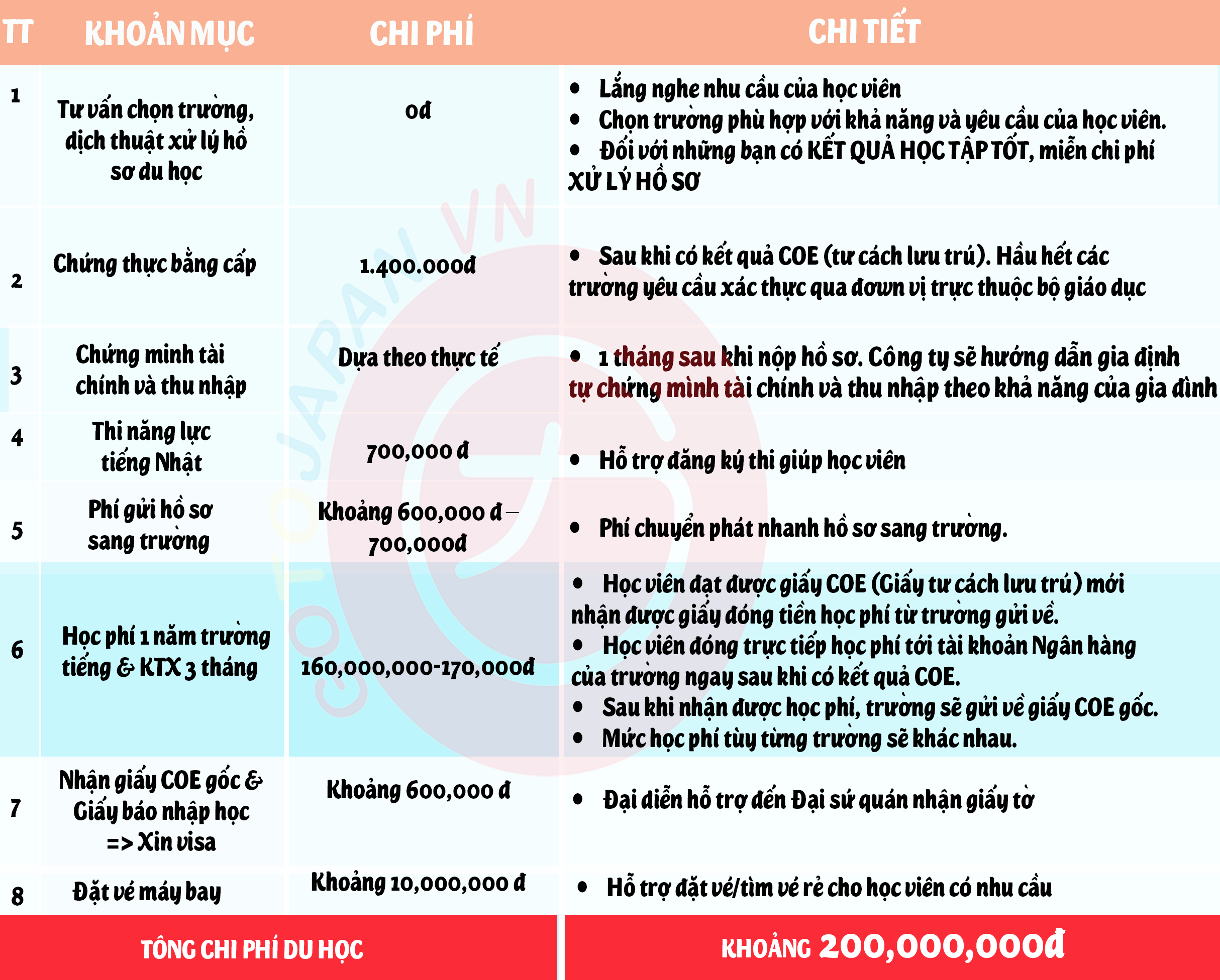 ♦ bước 5: Có kết quả tư cách lưu trú (COE), học sinh nộp học phí và tiền ký túc xá cho trường Nhật